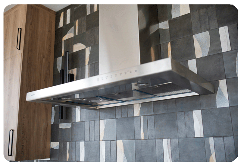 An important part of the kitchen backsplash design process is creating a CAD drawing. Each tile has a different pattern on the surface and it was important to place each one strategically for maximum overall design effect. This step also ensures that the Builder and homeowner review the drawing and approve it before installation happens. The installers use the CAD drawing to place the tile in the pattern that everyone agreed on. CAD drawings prevent material waste which saves money because the correct amount will be ordered upfront.