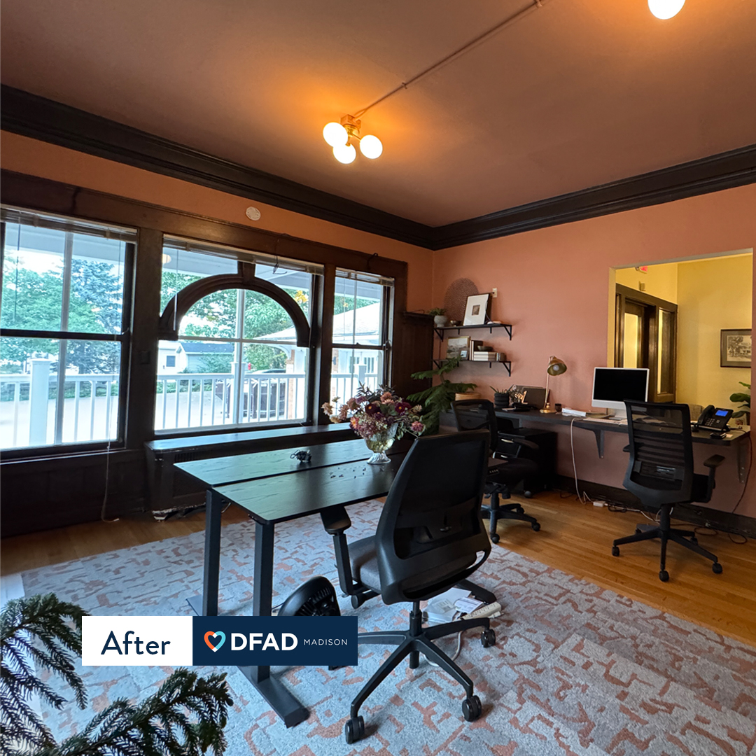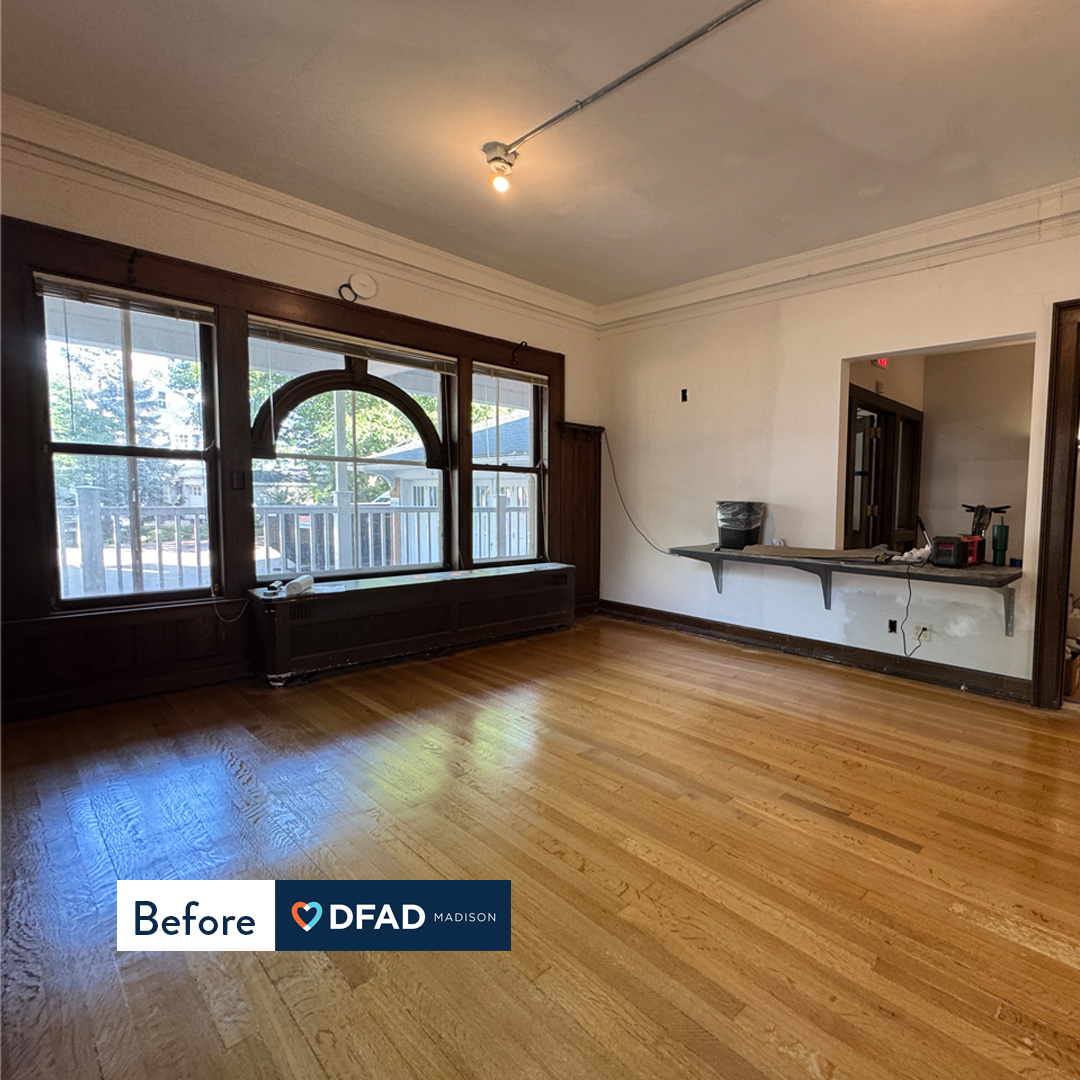 MADISON, WI (October 21, 2025) – FLOOR360, provider of high-fashion flooring and designs announced that the Design for a Difference makeover inside Journey Mental Health Center’s Yahara House program on Gorham Street in Madison is complete. FLOOR360 and the Design for a Difference design team gathered to reveal the makeover results ‘open your eyes’ style to a select group of Yahara House stakeholders and members on October 12. Since June, an all-volunteer group of interior designers have worked with almost 50 local businesses, suppliers, installers, painters, and volunteers to plan and provide a much-needed interior design makeover at this non-profit. The estimated value of contributions and donations from Madison area individuals and businesses is over $200,000, covering almost 3000 square feet inside the historic mansion.